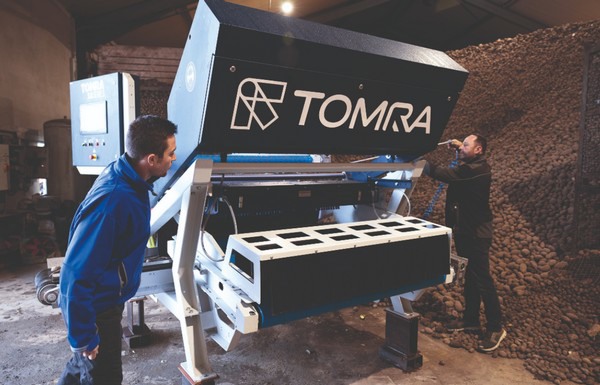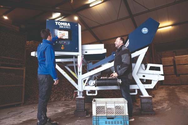 Le fait de se concentrer sur l'industrie des frites a ouvert un nouveau marché à croissance rapide pour l'exploitation. Afin d'assurer une qualité constante aux clients, les pommes de terre sont triées après la récolte pour éliminer les pierres et les saletés, puis stockées à 8°C avec une ventilation constante. Pour prolonger la durée de stockage et éviter que les pommes de terre ne s'abîment, il faut d'abord éliminer les matières indésirables, telles que les mottes de terre, les pierres et autres corps étrangers, ainsi que les pommes de terre vertes. À cette fin, l'entreprise utilise depuis 2021 la trieuse TOMRA 3A 1200 (avec un convoyeur d'entrée de 1200 mm de large), qui facilite grandement le travail. Cette machine est positionnée à l'entrée de l'entrepôt de pommes de terre, où les pommes de terre sont triées directement avant d'être stockées.