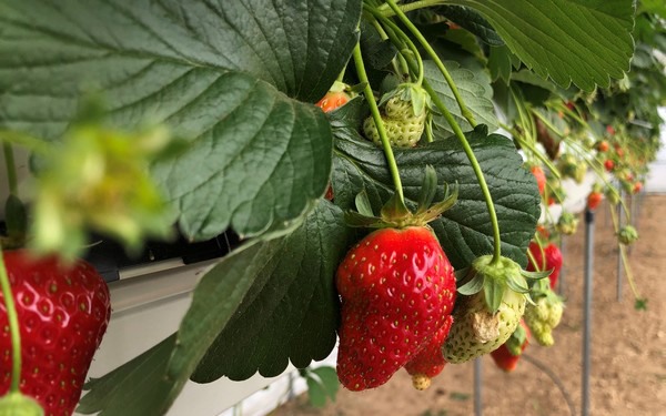 Par ailleurs, la fraise HS Evolution peut être suspendue ou enterrée dans le sol au moyen de poteaux qui lui permettent d'atteindre la bonne hauteur pour faciliter la récolte, une pente correcte pour un drainage efficace et efficient.