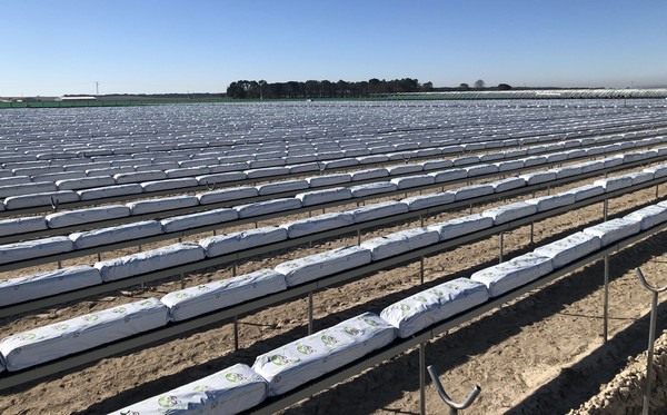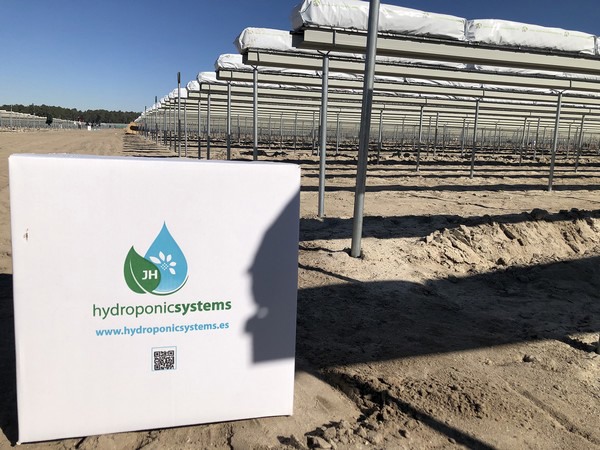 Hydroponic Systems dispose de profileurs opérationnels pour le travail à la ferme, comme on peut le voir sur la photo. Ce projet particulier porte sur 100 000 mètres linéaires de système HS Evolution pour un client espagnol qui prévoit de cultiver des fraises.