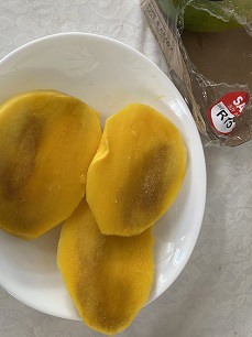 À droite : des mangues récemment achetées, mais déjà altérées, chez un détaillant du Cap et partagée sur les réseaux sociaux.