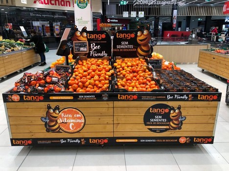Affiches spectaculaires au rayon fruits des hypermarchés, emballages spéciaux, îlots de présentation mobiles sur les marchés de gros, séances de dégustation dans les supermarchés de quartier avec des hôtes et hôtesses, tombolas et actions sur les médias sociaux... : Tango Fruit a doublé ses efforts de promotion cette saison. La campagne promotionnelle sert à soutenir le lancement de la marque sur des marchés tels que le Portugal et l'Angleterre ou à accroître sa visibilité dans les pays où elle est présente depuis des années, comme l'Espagne et l'Italie. La marque a également lancé récemment une campagne publicitaire dans les médias spécialisés et généraux pour mettre en évidence les caractéristiques de la variété, avec l'abeille souriante comme protagoniste et avec le slogan « Seedless.... est la solution. »