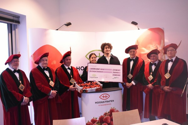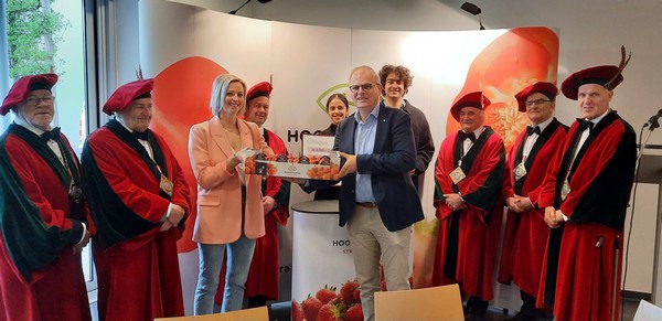 Hier, la Coopérative Hoogstraten a donné le coup d'envoi de la nouvelle saison des fraises dans une ambiance festive. Si l'année dernière le lancement avait été fait par voie numérique, cette année, la coopérative a de nouveau pu recevoir des invités dans ses locaux en Belgique. Comme le veut la tradition, la première barquette de 500 grammes de fraises a été mise aux enchères et c'est Sebrechts Groenten & Fruit d'Anvers qui pu l'acquérir au prix de 500 euros. Le plateau est composé de huit de ces barquettes, portant le total à 4 000 €.