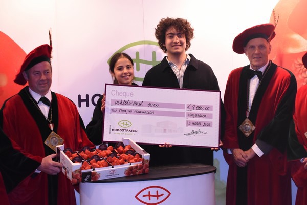 Les « Ghesellen van de Aardbei » étaient présents lors de la remise officielle du chèque à Julie et Kian Nadjmi, les enfants du Dr Nadjmi. Ils l'ont reçu au nom de la Fondation Nadjmi. Le Dr Nadjmi n'a pas pu être présent mais a envoyé un message vidéo de remerciement aux invités.