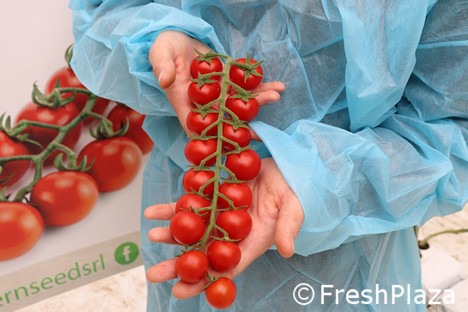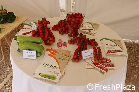 Parmi les variétés exposées : les courgettes vert clair Giovì, tomates cerises premium Buzz, les tomates cerise Datterì et Tokyo