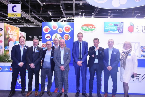 BFV au Fruit Logistica. F.l.t.r: Diether Everaerts, Patrick Thoen, Ludo Lousbergh, Gunther De Vadder, Marc Grauwels, Marc Evrard, Filip Lowette, Davy Smets, et Betty Slingers.