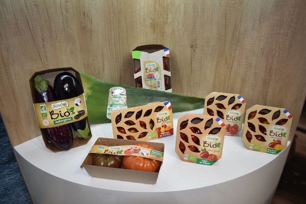 La loi AGEC a également été un moteur en termes d’innovation, puisque Savéol a développé toute une gamme de produits emballés dans de nouveaux conditionnements 100 % carton. Une orientation non négligeable puisque l’entreprise atteint aujourd’hui les 30 000 tonnes de produits conditionnés : « Cela fait 4 ans déjà que nous avons commencé à travailler sur nos emballages. Nous avons cherché à maximiser la visibilité pour le consommateur afin de le rassurer, puisque nous le savons, les yeux sont la première clé d’entrée lors d’un achat. Nous avons donc développé toute une gamme de conditionnements avec ouvertures latérales permettant de voir le produit sur les quatre côtés de la barquette. Ces emballages répondent également à un code couleur par type de variété qui permet au consommateur d’identifier encore mieux le produit et permet au chef de rayon d’harmoniser son rayon ».