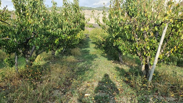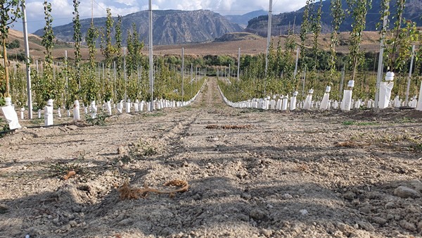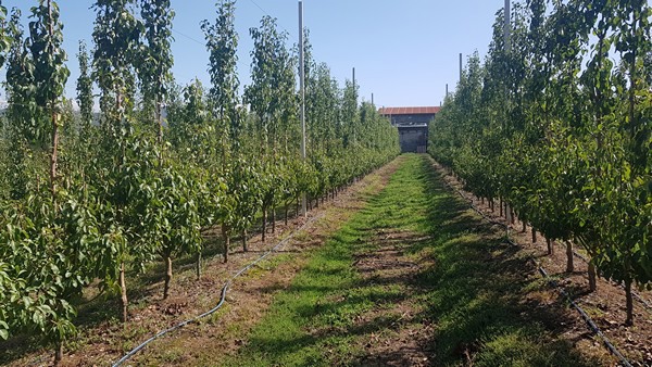 Plantation de poiriers de la variété Coscia au troisième cycle végétatif (30 mois).