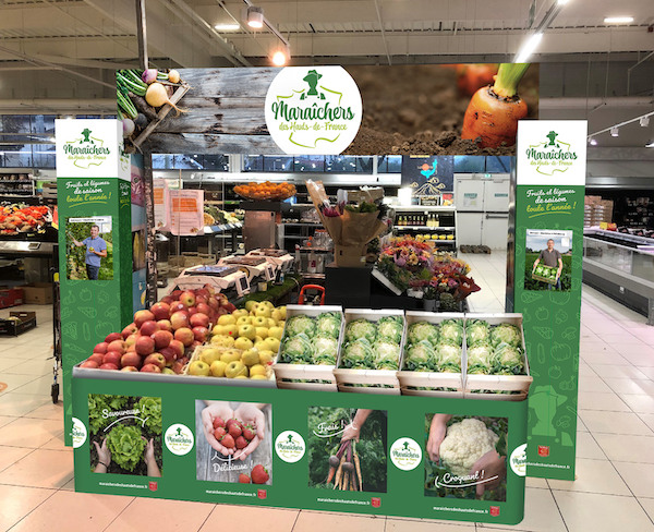 L’idée est de mettre en place des corners dans les super et hypermarchés des Hauts-de-France qui mettent en avant les fruits et légumes locaux selon leur saisonnalité. Ces corners seront implantés par des chefs de secteur partagés avec la marque d’endives Perle du Nord. La GMS est toujours le débouché principal pour le groupe, qui travaille aussi de plus en plus avec la restauration collective.