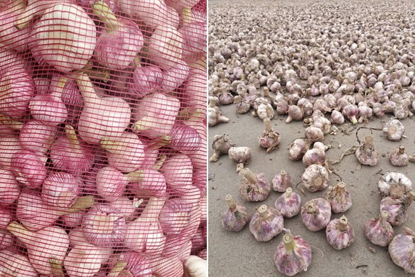Damon poursuit en expliquant que l'exportation d'ail rouge en vrac commencera à la fin du mois de mai. La récolte et l'exportation de l'ail blanc accusent dix jours de retard sur l'ail rouge.