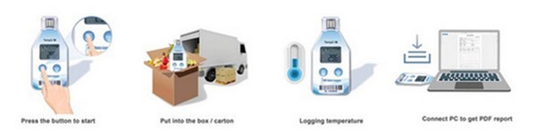 Les TempU08 / TempU08B appartiennent à une nouvelle génération d'enregistreurs de données de température et d'humidité spécialement conçus pour la logistique des produits frais. « Cet enregistreur de données a l'air délicat, mais l'appareil est étanche, et aussi très facile à utiliser. Le client allume l'enregistreur de données d'un seul clic, et l'enregistreur de données commence alors à enregistrer. Ensuite, il suffit au client de connecter l'enregistreur de données à un ordinateur pour générer automatiquement des rapports PDF et CSV sur la température et l'humidité », a déclaré M. Liao.
