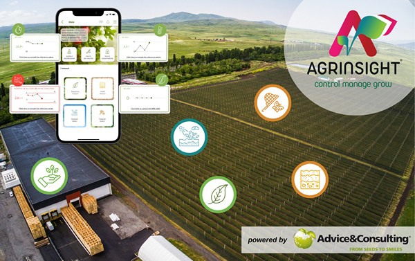 Alexandra Caminschi (AC) : Agrinsight est une application créée par Advice&Consulting pour optimiser la gestion agronomique de votre entreprise fruitière. L'application offre un suivi complet de toutes les informations provenant du terrain et une comparaison immédiate des données recueillies avec les valeurs optimales. En présence d'anomalies, Agrinsight envoie automatiquement des alertes, indiquant comment et quand intervenir. Le chat intégré de l'application avec le département agronomique assure un soutien total au cours de chaque activité.