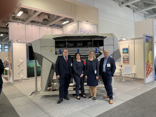 L'équipe de vente de Forsfood à Fruit Logistica 2022 : Rune Sars, Anita Keskikoivisto, Erika Mattila et Heikki Lindfors.