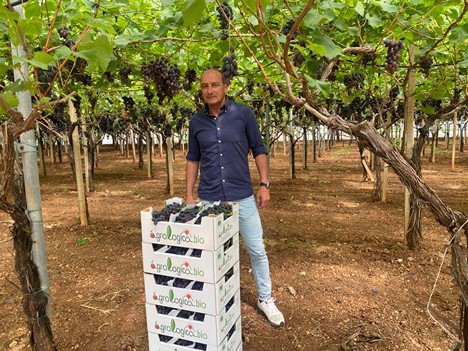 « Avec environ 200 hectares de terres, dont une partie en culture sous serre, nous pouvons approvisionner en continu nos clients étrangers. Nous vendons 40 % de nos raisins en France, 30 % en Allemagne et 20 % en Scandinavie. Seuls 10 % de nos clients sont des entreprises italiennes. La France apprécie nos raisins principalement parce qu'ils sont récoltés au bon stade de maturité. La couleur tend alors vers le jaune, et la teneur en sucre est élevée. En août, nous récoltons les cépages moyennement mûrs, blanc, rose et noir. Nous cueillons les derniers fruits à la fin du mois de novembre ».