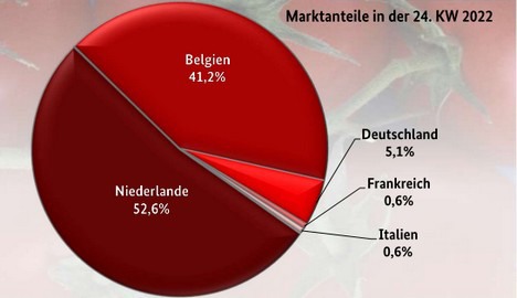 Les tomates néerlandaises et belges constituaient la base de l'approvisionnement. L'offre était assez limitée. En outre, la présence des offres nationales et italiennes a quelque peu diminué. Selon le BLE, les offres de la Pologne, de l'Espagne et de la France étaient principalement complémentaires. La demande a généralement pu être satisfaite sans efforts importants. Les prix ont eu tendance à augmenter dans différents cas en raison d'achats ou de meilleures possibilités de vente.
