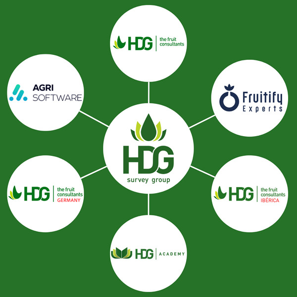 Le HDG Survey Group a été créé en 2020, mais son histoire remonte à 1981, lorsque HDG The Fruit Consultants (Rotterdam) a été fondé. Aujourd'hui, le HDG Survey Group est composé de HDG The Fruit Consultants, HDG Ibérica, Fruitify Experts, HDG Germany, Agri Software et HDG Academy. « Le HDG Survey Group est intégralement coopératif. La synergie qui en résulte offre à nos clients une valeur ajoutée supplémentaire », souligne Stijn Verstijnen, codirecteur du HDG Survey Group.