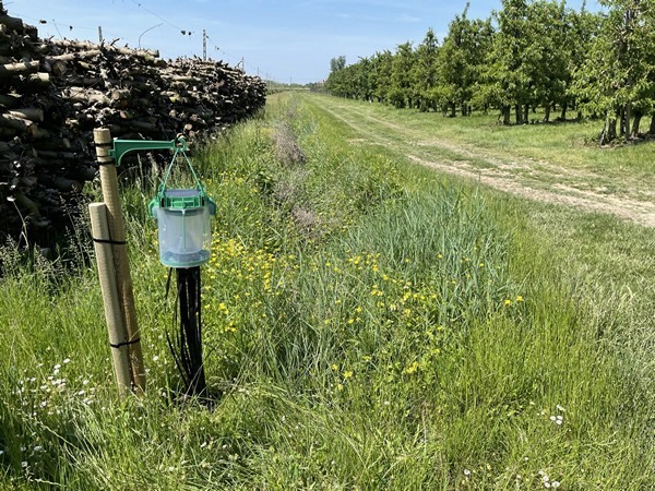 Les pièges doivent être installés au début de la saison, à l'extérieur et à une certaine distance du verger à protéger à l'aide de poteaux de soutien. Ils doivent être installés dans les zones de l'entreprise où Halyomorpha halys est plus susceptible de se développer, en particulier le long des périmètres de culture, près des haies et des bâtiments. Des pièges supplémentaires doivent être placés sur tous les côtés ou points à risque. Les pièges doivent être remplacés après 12 semaines.