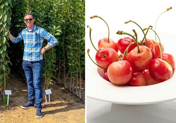 À gauche : Alwyn van Jaarsveld. À droite : La variété Cheery Glow™