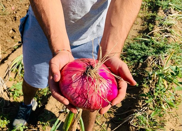 « Durant la saison actuelle, les rendements à l'hectare avoisinent les 25 tonnes. Nous avons réussi à nous sauver de la sécheresse également grâce aux différents cycles d'irrigation de ces dernières semaines/mois, qui ont permis une croissance idéale des bulbes, sinon nous aurions eu des quantités et des qualités limitées cette année. Les oignons sont d'excellente qualité, avec des teneurs moyennes de 500-600 grammes et des pointes de 1,3 kg. Tout le monde est fasciné par la couleur rouge-violacée des bulbes. Nous ne pouvons pas nous plaindre, les ventes sont bonnes et ne cessent de croître. »