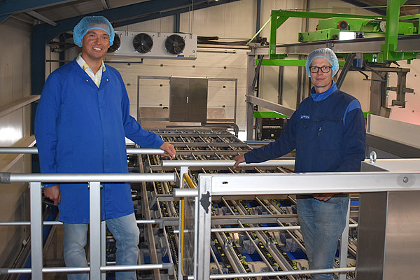 Le cultivateur a contacté des constructeurs néerlandais de machines de tri, mais sans succès. Il a donc contacté MAF Roda, à l'origine un bureau d'études français qui s'est surtout fait une réputation dans le tri qualitatif des fruits et des agrumes. « Ils ont tout de suite commencé à travailler dessus. Ce qui était bien, c'est qu'ils pouvaient utiliser les mêmes rouleaux que ceux qu'ils utilisent déjà pour trier les dattes et les cerises. »
