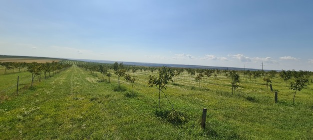 Fjodor explique que la pollinisation est le plus grand défi de la culture du noyer. « Un noyer a des fleurs mâles et femelles, mais elles ne fleurissent pas simultanément. Au moins 5 % de votre verger doit être constitué d'une variété dont les plantes mâles fleurissent exactement au moment où les fleurs femelles de votre variété principale bourgeonnent. Nous n'en avons pas tenu compte au début. Aujourd'hui, tout va bien, et nous avons 16 hectares de noyers, dont 10 de la variété américaine Chandler. Les variétés moldaves ne commencent à produire qu'après sept à dix ans. Nous avons les arbres Chandler depuis cinq ans et le rendement a déjà été atteint l'année dernière. »