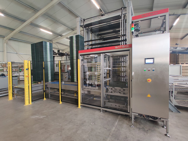 Aux Pays-Bas, Bateq a récemment installé une nouvelle ligne de production chez C. Zwinkels Paprikakwekerij. Cette ligne entièrement automatisée permet à ce producteur de poivrons de dépalettiser, désempiler, déplier et transporter des caisses pliantes. La ligne les transporte vers le système de triage arrière, où les caisses sont remplies. Les caisses remplies sont ensuite empilées et palettisées à nouveau.