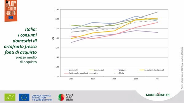 La directrice du CSO Italie a également abordé l'évolution des prix annuels moyens pour les différentes sources d'achat : « Je pense qu'il est difficile de détecter une relation entre le prix d'achat moyen et les produits biologiques, car les raisons qui motivent un achat sont moins liées aux prix que dans le cas des produits traditionnels. Par exemple, les magasins discount ont un prix moyen plus bas que les autres sources d'achat. Quant aux supermarchés, ils ont commencé avec des prix moyens plus élevés, mais ils sont maintenant plus proches de la moyenne. »