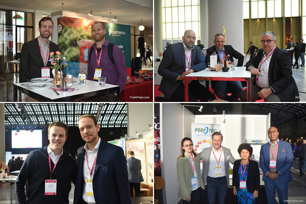 De gauche à droite et de haut en bas : Roelant Komen (Carsol Europe) et Robert van Melle (Eosta) ; Jeroen Vayen, Miguel Demaeght (BelOrta) et Philiep Willems (REO) ; Simon Elting et Nico Broersen (AgriPlace) ; Elisa Bongiolatti, Bas Groeneweg, Renate Brandon et Stefano Hiwat (PerfoTec)