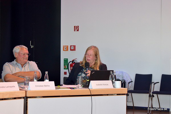 Amélie Lachapelle d'Innovterra Consulting au Canada a tout d'abord pris la parole. Elle a fait savoir qu'en 2021, les régions de l'Ontario et du Québec ont planté une superficie de 2411 hectares pour en récolter 2 066 hectares. La production totale s'élève à 8 940 tonnes, avec un rendement moyen de 4,3 tonnes/hectare. Il y a environ 140 producteurs d'asperges au Canada, chacun cultivant environ 17,5 hectares. Pour 99,9 %, d'asperges vertes. La consommation annuelle d'asperges fraîches est de 0,8 kg par habitant et celle du produit transformé de 0,03 kg par habitant. La majeure partie de la récolte est vendue à des conditionneurs individuels et au commerce de détail par l'intermédiaire du commerce de gros, la plupart des entreprises commercialisant directement leur marchandise pendant la saison.