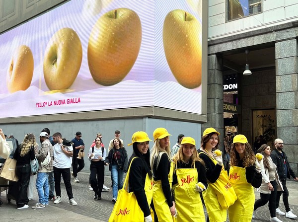 Pour marquer le début de la saison, les initiatives promotionnelles ont également démarré avec une semaine d'affichage vidéo, accompagnée d'une activité de distribution de produits qui s'est déroulée le 22 octobre sur le Corso Vittorio Emanuele en plein centre de Milan : l'endroit idéal pour communiquer le positionnement de la pomme comme produit premium et, grâce à cinq hôtesses, permettre aux passants de goûter pas moins de 2 500 pommes jaunes. Quant au commerce, les semaines jaunes - initiatives visant à encourager les marchés de fruits à acheter la yello - sont de retour, ainsi que les activités d'échantillonnage, les promotions, les dégustations en magasin et les initiatives de marketing direct par e-mail.