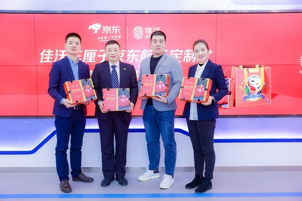 Lors de la cérémonie de signature, Joy Wing Mau s'est associé au représentant de JD.com, Wang Wenbo, directeur général de l'équipe de vente du département des produits frais de JD.com. Ensemble, ils ont lancé un coffret cadeau sur JD.com contenant des cerises Joyvio aux couleurs de la CASC.