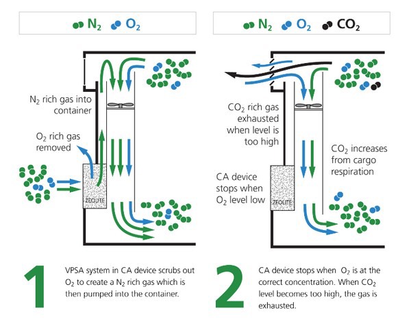 Daikin Active CA a été lancé sur le marché en 2017. L'unité Daikin CA fonctionne à l'intérieur d'un conteneur d'expédition avec un générateur d'azote autonome qui produit sa propre atmosphère en utilisant la technologie brevetée VPSA (Vacuum pressure swing adsorption).