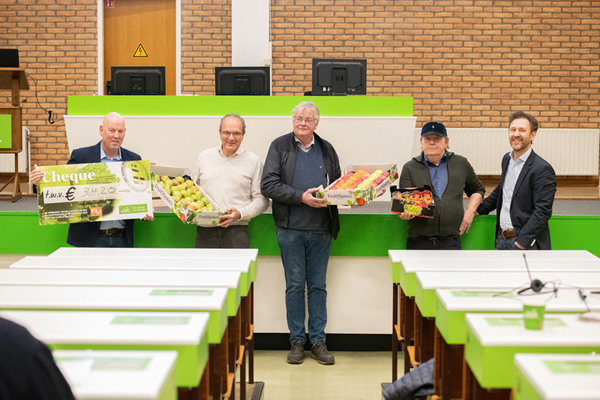 Les acheteurs, les producteurs, les anciens commissaires-priseurs et le personnel de FruitMasters ont assisté à la vente finale du vendredi 23 décembre. Pendant la vente aux enchères, on s'est presque attardé sur cette prédiode qui se termine, et on s'est souvenu. Les dernières pommes, poires et petits fruits ont été vendus pour une œuvre de charité et achetées par les bienfaiseurs Arie den Dekker, Jesper Duwel et S.C. van Ravenswaaij. FruitMasters a doublé les recettes et un total de 3 420 € a été reversé à la fondation KiKa.