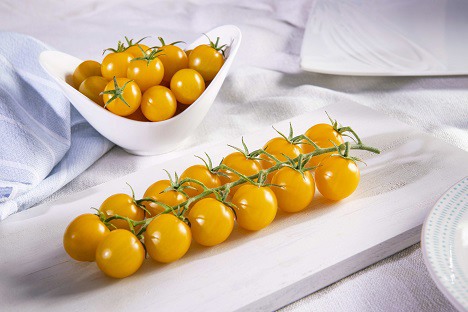 Côté production maintenant, le semencier a voulu créer une plante qui réponde à la fois à des critères de modernité, qui soit équilibrée, facile à conduire et adaptée à des productions sol et hors sol en conditions high-tech, low-tech ainsi qu’en cultures éclairées. « Les fruits pèsent en moyenne de 12 à 14 grammes et sont très bien placés sur la grappe. Les qualités de peau et de chair confèrent au fruit une meilleure tolérance à la micro-fissuration. De plus, la variété présente un pack résistance non négligeable avec notamment la résistance à la Cladosporiose pour faciliter les contraintes des producteurs face à la pression virale actuelle ». La couleur jaune intense de la variété a également été travaillée pour permettre aux producteurs d’apporter un produit attractif et différenciant dans les étals.