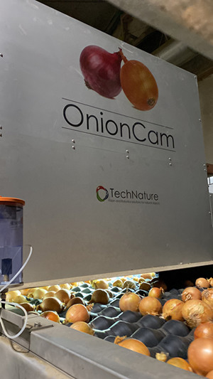 Selon Bac, la machine se distingue tout particulièrement par les caméras latérales. « L'OnionCam épluche littéralement des yeux les oignons placés sur une courroie en V, puis sur des rouleaux diabolo. Le fait d'isoler les bulbes et tubercules améliore la visibilité des côtés de l'oignon ou de la pomme de terre pendant leur rotation. Cela permet une vision totale du produit, contrairement aux machines équipées de rouleaux de calibrage plats. La capacité d'une trieuse à 12 rangs est de 15 à 20 tonnes par heure, selon le calibrage.