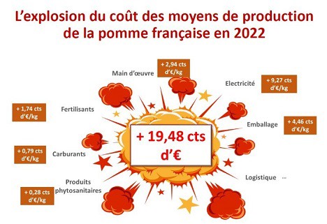 Emballages, engrais, électricité, sans oublier une concurrence étrangère de plus en plus importante : depuis plusieurs mois, les pomiculteurs, qui doivent faire face à des charges en hausse constante, ne cessent d’alerter sur la nécessité absolue de revaloriser les prix payés au producteur. Or « il suffirait de 0,20 €/kg de plus sur les prix d'achat pour que les pomiculteurs français s'en sortent ! ».