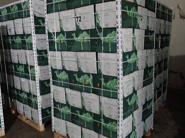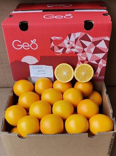 Des oranges d'Égypte, symbolisées par le chameau, emballées sous la marque Geo