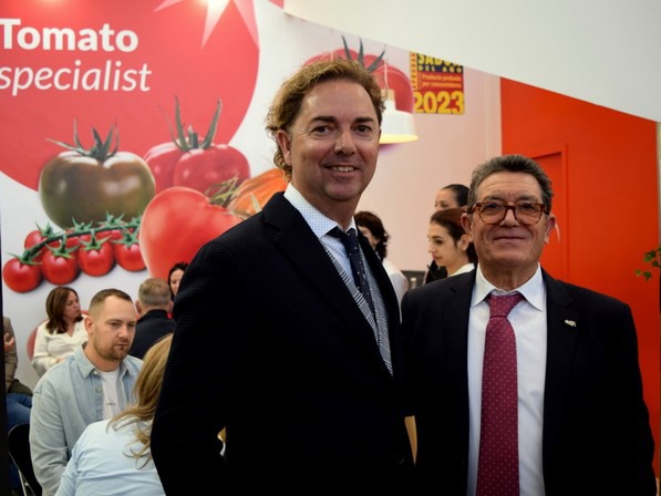 Julián avec Celedonio Pleguezuelos lors de la récente édition du salon Fruit Logistica 2023