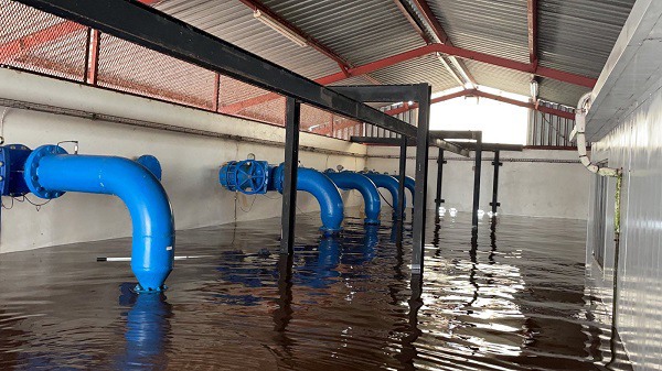 Station de pompage sous l'eau dans une exploitation bananière du Mozambique après les fortes pluies des dernières semaines