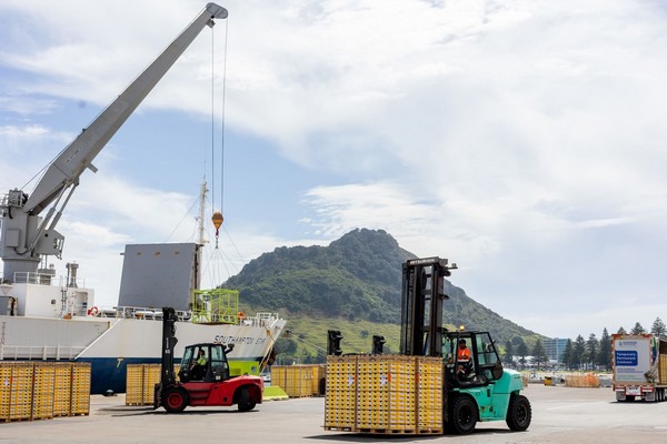 La première cargaison de la saison 2023 des kiwis néo-zélandais vient de quitter le port de Tauranga, transportant environ 2 500 tonnes (plus de 600.000 plateaux) de kiwis Zespri SunGold à destination de clients au Japon.