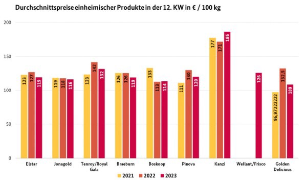 Les producteurs du pays espèrent augmenter leurs prix jusqu'à une couverture suffisante des coûts encourus. La part des produits biologiques (avec les variétés Braeburn, Elstar, Gala, Jonagold et Topaz) a augmenté à Francfort. Dans le nord de l'Allemagne, les premières pommes Tenroy/Royal Gala seraient déjà arrivées d'outre-mer.