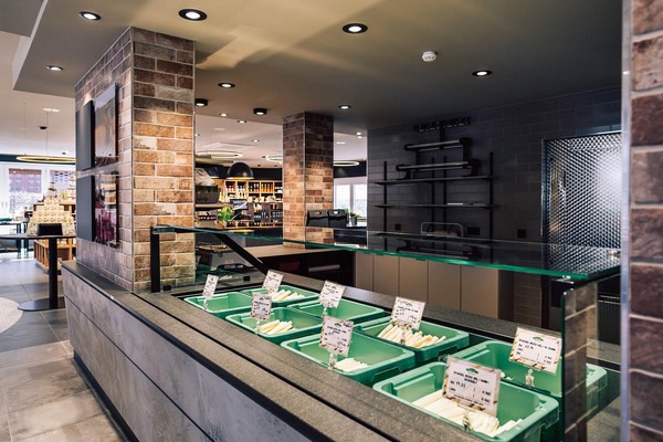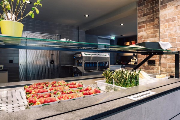L'année dernière, P2raumdesign avait déjà mis en œuvre cette technologie à grande échelle dans le nouveau magasin de la ferme d'asperges Strampe en Basse-Saxe pour les ventes réfrigérées d'asperges et de baies. Les réactions après la première saison de commercialisation ont été particulièrement positives, a-t-il déclaré. « Cette technologie offre de nombreux avantages, tant en période de pointe qu'en période creuse. Pendant la haute saison, les produits en vrac de haute qualité sont vendus au comptoir en service complet. Puis, hors saison ou en cas de besoin, la vitrine peut être abaissée pour présenter des produits pré-emballés, tels que des baies dans des coupes ou des asperges emballées, réfrigérés et en libre-service », explique Rainer Palinkasch de P2raumdesign.