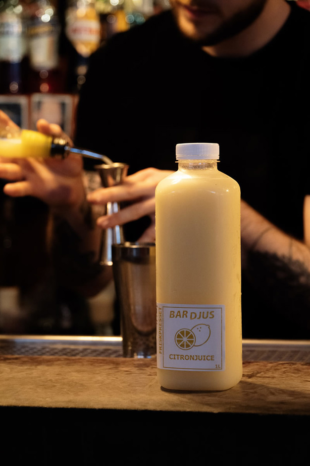 Pour importer les matières premières, BAR DJUS a recours à des importateurs danois. La plupart des citrons verts proviennent du Brésil, les citrons de Sicile et le gingembre du Pérou. « Nous n'avons pas pu nous approvisionner en gingembre au Pérou pendant un certain temps en raison des troubles politiques qui y régnaient. Nous nous sommes donc tournés vers le Brésil. Mais je n'aimais pas leur goût. » Les prix des importations sont généralement fixés mensuellement ; les clients reçoivent eux aussi un devis mensuel ou trimestriel.
