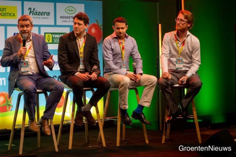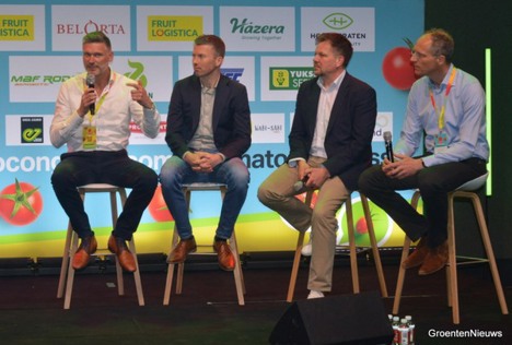 Après une première pause, quatre experts de l'industrie ont pris la parole dans le cadre d'une table ronde. Dirk Aleven de FoodVentures, Imre Vellenga d'Agro Care Growers, Philippe Appeltans de BelOrta et Adam Davy de l'ICA se sont engagés dans un débat animé sur les défis rencontrés par le marché de la tomate et sur la manière dont l'industrie doit y répondre. Philippe a abordé la question de la pénurie de tomates au Royaume-Uni en hiver dernier tout en plaidant pour l'établissement d'un plus grand nombre d'organisations de producteurs au Royaume-Uni, afin d'encourager les supermarchés à payer des prix équitables pour les tomates. Philippe a noté que malgré la disponibilité des tomates BelOrta, des pénuries se sont produites en raison d'un prix légèrement plus élevé. Il a résumé la situation en disant qu'il s'agissait d'une question d'argent.