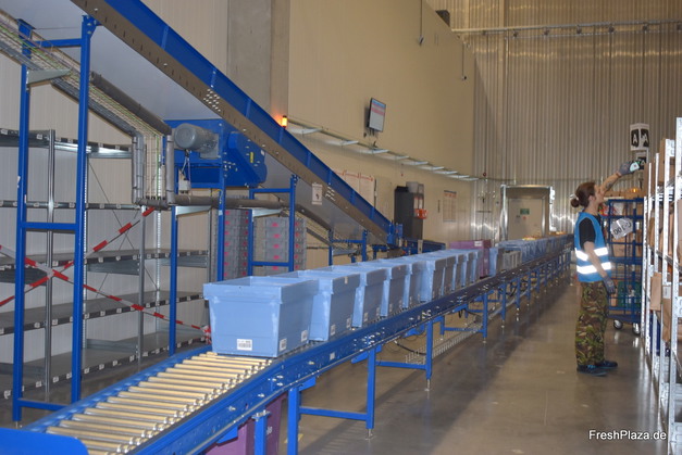 Dans la dernière station, la zone d'expédition, les commandes sont prises par le tapis roulant et triées sur des étagères. « La moitié de ce hall sera automatisée à l'avenir. Après la mise en œuvre réussie de l'automatisation, la partie manuelle restante de l'expédition sera également automatisée. Les robots retireront alors les commandes du tapis roulant et les placeront sur les étagères. Une fois que l'itinéraire des commandes aura été déterminé, les robots placeront les commandes dans les rayonnages. Les commandes préparées pour les tournées pourront alors être chargées plus facilement et plus rapidement dans nos véhicules de livraison. Nous pourrons alors utiliser les employés dans les secteurs où nous avons de toute façon besoin de plus de personnel. » La conversion du système d'automatisation de l'expédition devrait commencer fin mai/début juillet et s'achever fin août. Un autre entrepôt, d'une superficie d'environ 8 000 m², est situé à Bischofsheim, près de Francfort.