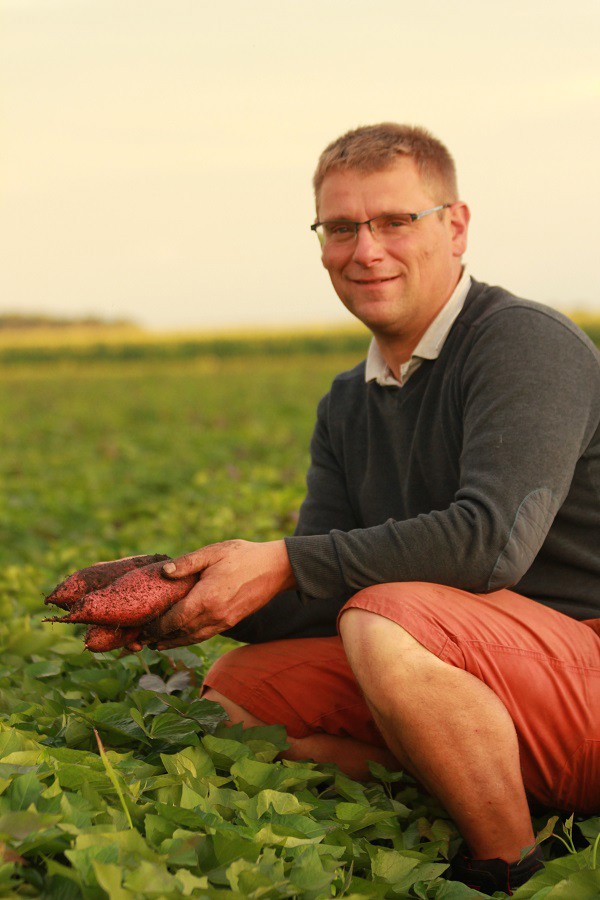 Benoit Labouille a commencé à cultiver de la patate douce en 2015, avec l’idée de proposer un produit origine France à destination de la GMS et des grossistes. Si au départ il ne fournissait que le marché local, le besoin d’élargir les zones de vente l’a fait se tourner vers la grande distribution. Le producteur détient aujourd’hui près d’une quarantaine d’hectares en conventionnel et en Agriculture Biologique. Sur son exploitation installée en Nouvelle-Aquitaine, il produit aussi de la pomme de terre bio.