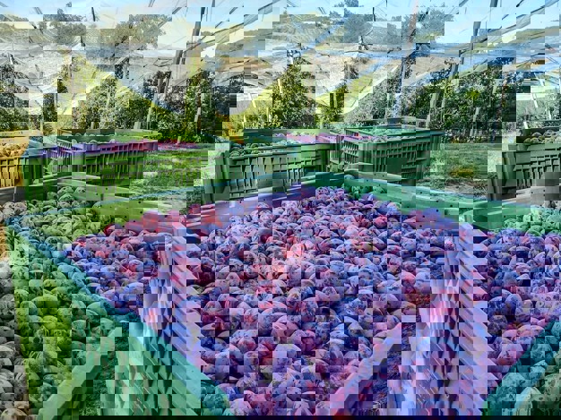 La gamme Lily Ploom, c’est 4 variétés complémentaires de prunes qui se succèdent de fin-juin à mi-octobre. « Nous sommes allés chercher ces variétés en Afrique du Sud et nous avons adapté leur culture à notre terroir. L’objectif étant d’avoir une rouge et une jaune gustatives tout au long de la saison ». L’African Rose, variété la plus précoce de la gamme, donne le coup d’envoi de la saison jusqu’à mi-juillet. Cette prune rouge à chair jaune a été sélectionnée pour « son excellente qualité gustative malgré sa précocité ». Vient ensuite la Primetime, dont la commercialisation s’étale de fin-juillet à mi-août. Il s’agit aujourd’hui de la variété la plus vendue sous la marque Lily Ploom. « Nous attendons entre 1 000 et 1 200 tonnes cette année pour les trois distributeurs », précise Eric Tastayre. Une variété de prune rouge à chair rouge de plein cœur de saison qui a su au fil des années conquérir le consommateur. Commercialisée sur la même période, la prune jaune Soryana a également été sélectionnée pour son haut potentiel gustatif. Enfin, la Ruby Star, dernière variété à avoir rejoint le club, clôture la saison de mi-août à mi-septembre.