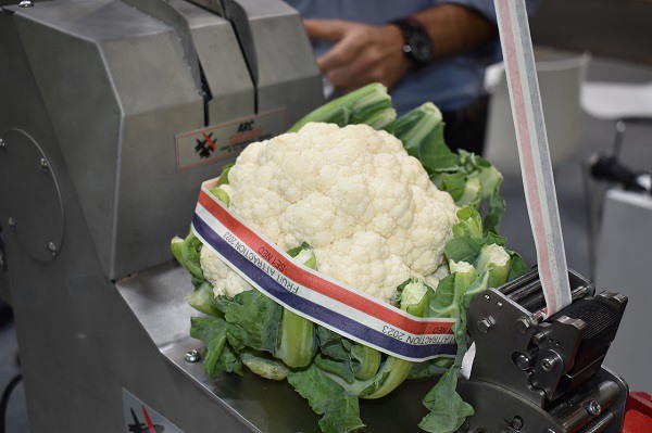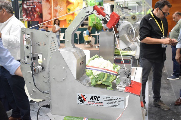 « Cette machine est une botteleuse à bande adhésive. Elle a été conçue pour répondre aux demandes des clients concernant la sécurité des opérateurs. Elle est ainsi équipée de double capteurs inductifs. Elle dispose également d’une grande ouverture pour des produits comme le chou-fleur ou encore le butternut ». Autre caractéristique : « l’option impression » qui permet d’inscrire sur la bande un numéro de lot ou une date par exemple. « Cette machine permet aussi de répondre aux contraintes de la loi AGEC puisque le banderolage peut se faire avec une bande adhésive 100 % papier aux normes alimentaires. Pour certains produits (le bio notamment) le banderolage remplace avantageusement l’étiquetage en offrant une grande surface de communication (code barre, logo, coordonnées du producteur/emballeur etc…) et en étant inviolable ».