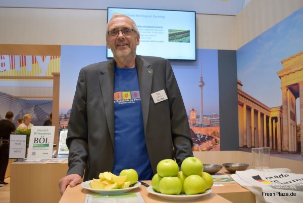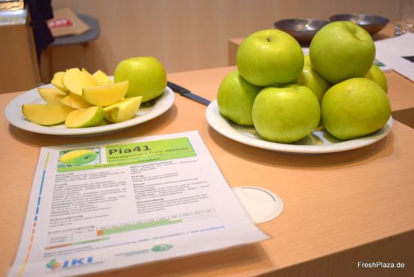 À l'occasion du salon Anuga de cette année, le Dr Andreas Peil, de l'Institut de recherche sur la sélection des fruits de l'Institut Julius Kühn, a présenté la nouvelle variété de pomme verte Pia 41, qu'il a contribué à développer. « Tout a commencé par un croisement effectué en 2005. Les graines ont été semées un an plus tard, puis sélectionnées, multipliées et testées dans différents environnements pendant plusieurs années », a déclaré le Dr Peil. « La variété s'est avérée si bonne que nous avons demandé et obtenu un certificat de protection des variétés végétales pour la Pia 41. Notre objectif est de développer le marché et la demande à l'échelle nationale via le marketing direct. »