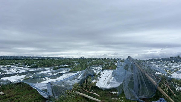« Il s'agissait jeune champ qui entrait dans une très bonne phase de production », fait-elle remarquer. « Nous ne savons pas encore combien d'autres parcelles sont endommagées sous les filets. »