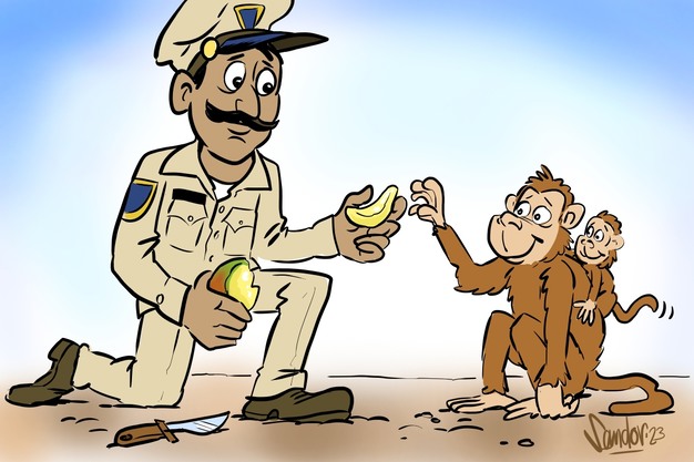 Dans une vidéo devenue virale sur les réseaux sociaux, un officier de police de l'Uttar Pradesh nommé Mohit a fait preuve d'un geste de bonté remarquable envers une mère singe et son petit. Sur les images partagées par la police de l'Uttar Pradesh sur son compte Twitter officiel, l'agent coupe des mangues et les offre au singe.